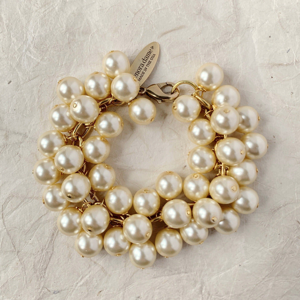 This stunning cluster of pearls is sure to wrap beautifully around your wrist or that of one you love. This Iconic Pearl Cluster Bracelet will add a pop of personality to an evening look, formal affair or even a work day depending on how you style it. This cluster is a beauty to look at and a delight to style. Whether you are attending your best friend’s wedding or enjoying an evening out, these pearls are sure to keep you in good company as they are certain to catch the eye of those around. Be prepared for compliments!
