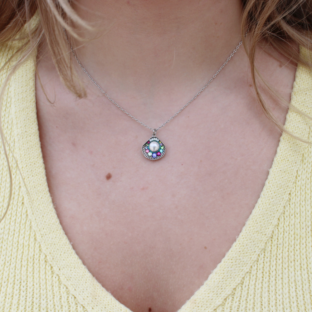 This totally giftable Firefly Sea Shell Pearl Pendant Necklace is sure to bring a smile to the face of all those who lay eyes on it. The wearer is certain to be speechless at the beauty of this colorful pendant necklace. Featuring multi-color European crystals and Czech glass, this design is sure to bring the mermaid-loving heart out in you. This shell design holds an assortment of crystals in an assortment of colors that helps its versatility. It is perfect for layering with other necklaces or wearing it solo. We wouldn’t be surprised if this colorful cutie became a staple in your jewelry rotation.