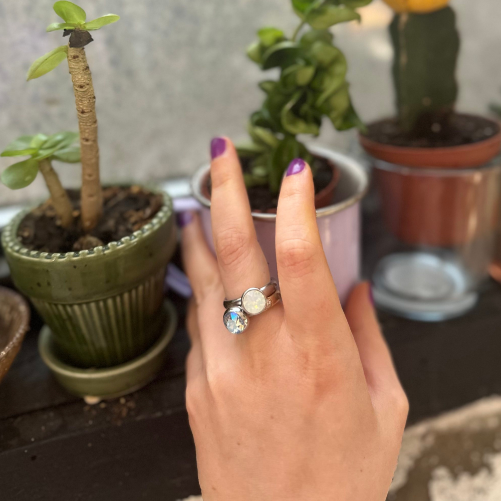 The main event in the Qudo 10mm Bottone Silver Topper is the central stone. A delicate silver setting encircles a large, radiant pearl or geometrically-cut gem for a simple, sophisticated showstopper. See the wide selection of colors above and take a closer look!