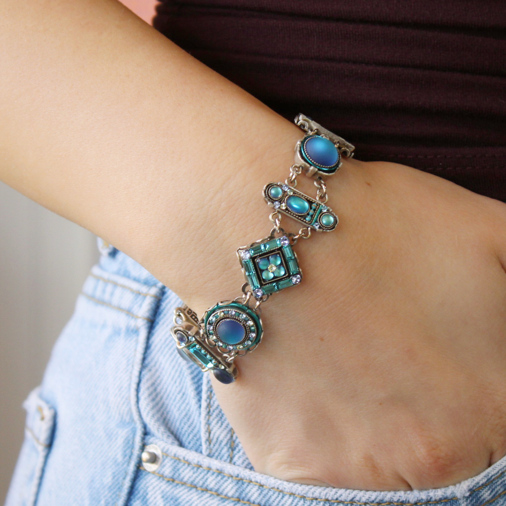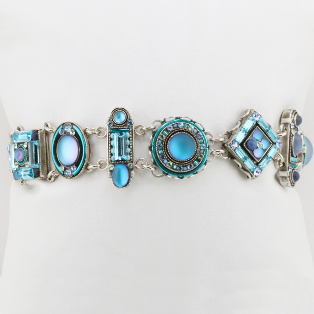 Are you ready for this snow colored showstopper to make its debut into your wardrobe? This effervescent bracelet is a sight to see and THE accessory to style. (In our opinion, of course.) The La Dolce Vita Moonlight Bracelet features faceted shapes such as baguette, emerald, round, oval and princess cut that are linked together in a beautiful design. There are a variety of the shapes in different sizes that make this mosaic all the more stunning. From colors with shades of iridescent, white and pale blue. This bracelet is sure to be an instantaneous favorite! Some might even dare to say, this is fate.