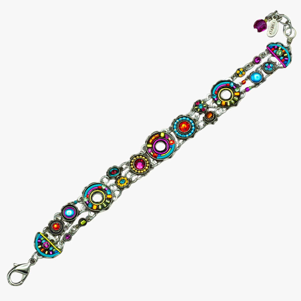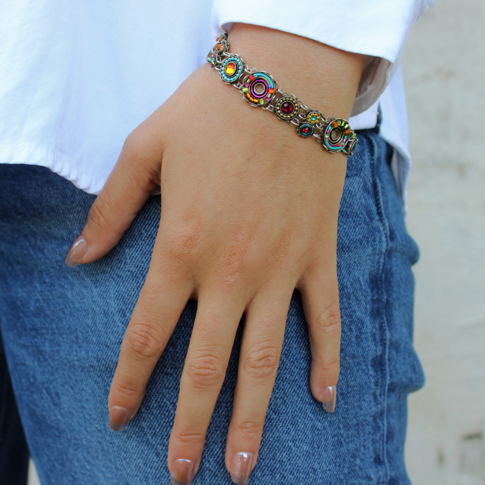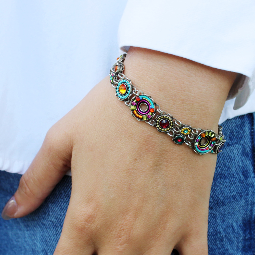 This Cirque Mosaic Bracelet is a brilliant combination of color and shine. Featuring multicolor European crystals, Japanese and Czech glass beads, this dainty bracelet is packed full of colorful beading that are so to help you let in the lovely. The beautiful bracelet has a mix-match of size and shapes in colorful beading, but the whole design is a stunning creation that is sure to be a treat to wear. Enjoy!
