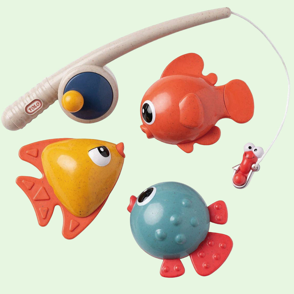 This Funtime Fishing Set can be used in and out of water, but what a fun way to learn and play than in water. With this fishing set, your kiddo can learn about water in motion and have fun playing pretend. This set comes with three colorful fish, a fishing rod and a little bait that is ready to be a part of the fun too! These fish are sure to make the best company for play and bath time. We think they might help your little one enjoy the bath a little more especially if they tend to be a little fussy. Happy fishing!