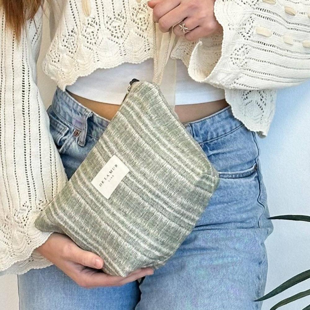 This Ipes Large Toiletry Bag is sure to make a great addition to your travels or daily on-goings. Featuring neutral shades of greens and grays accented by a beige brand label on the side, this bag is certain to become a fast favorite. The tie dye fabric is produced in Spain, and is sure to catch the eye of those around you. Be prepared for compliments! The natural feel of the bag also has a level of sophistication that is sure to make it a lovely addition. This bag also features a zipper closure on top, so you can be sure your belongings are secure wherever the day takes you.