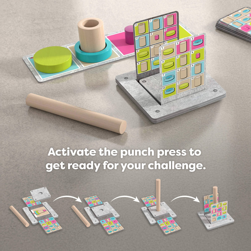 • Wooden Components and Cool Punch Press: This innovative game features brightly colored wooden pieces and a sturdy punch press that adds a satisfying game play component making this a unique and exciting family game.