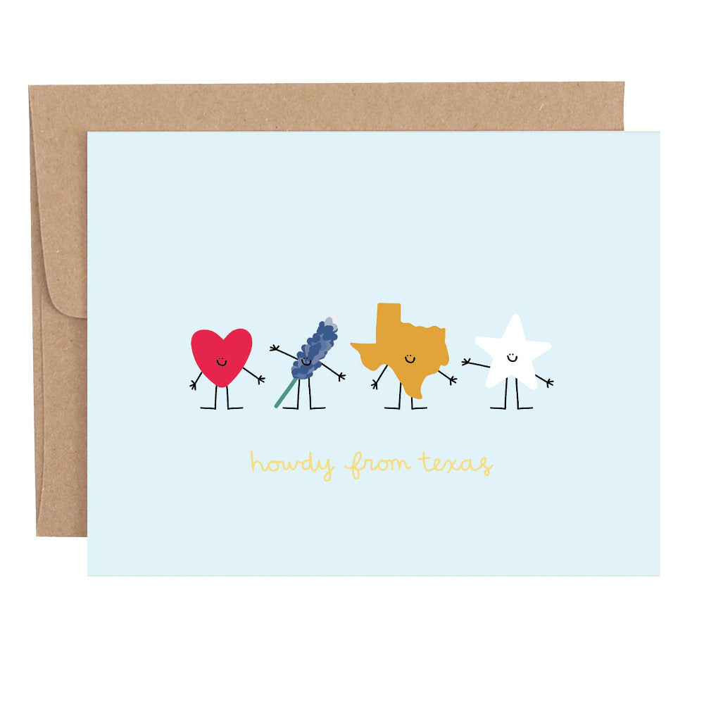 The Howdy From Texas Greeting Card is sure to put a smile on someone's face when they open this card! This card is blank inside and is perfect for your own heartfelt message!