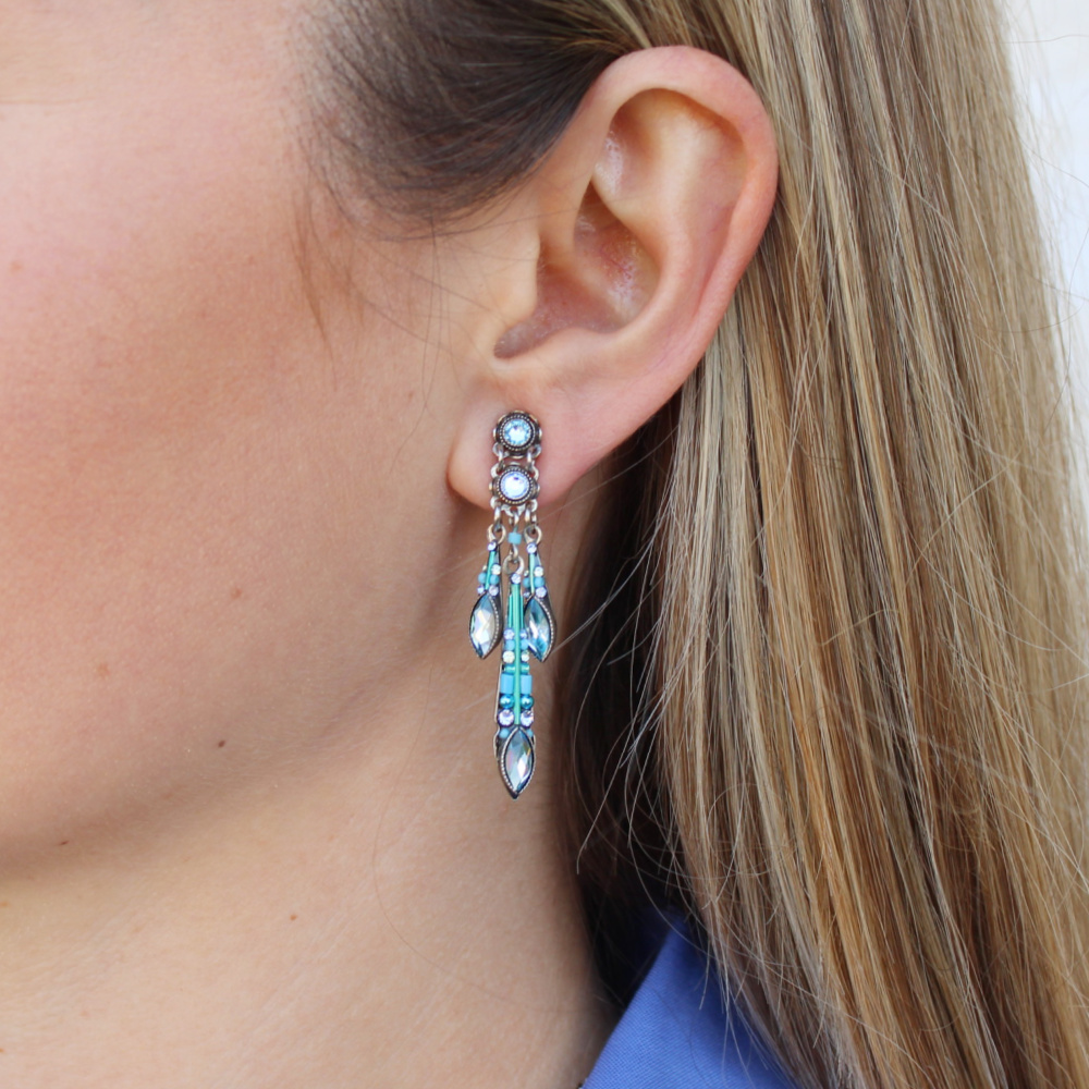 Pull your hair up and be prepared for a fabulous attitude change! You are sure to enjoy the movement of these earrings as you go about your day, giving you an air of mystery. These spectacular dangling Carmel Crystal Chesna Earrings are a sight to see! Everyone is sure to wonder who you are and what your secret is to such a chic fashion. The soft ocean colors are a mosaic of designs and materials that truly are a work of art! You are sure to have a blast styling these Firefly earrings. Treat yourself to a gift. You deserve it!