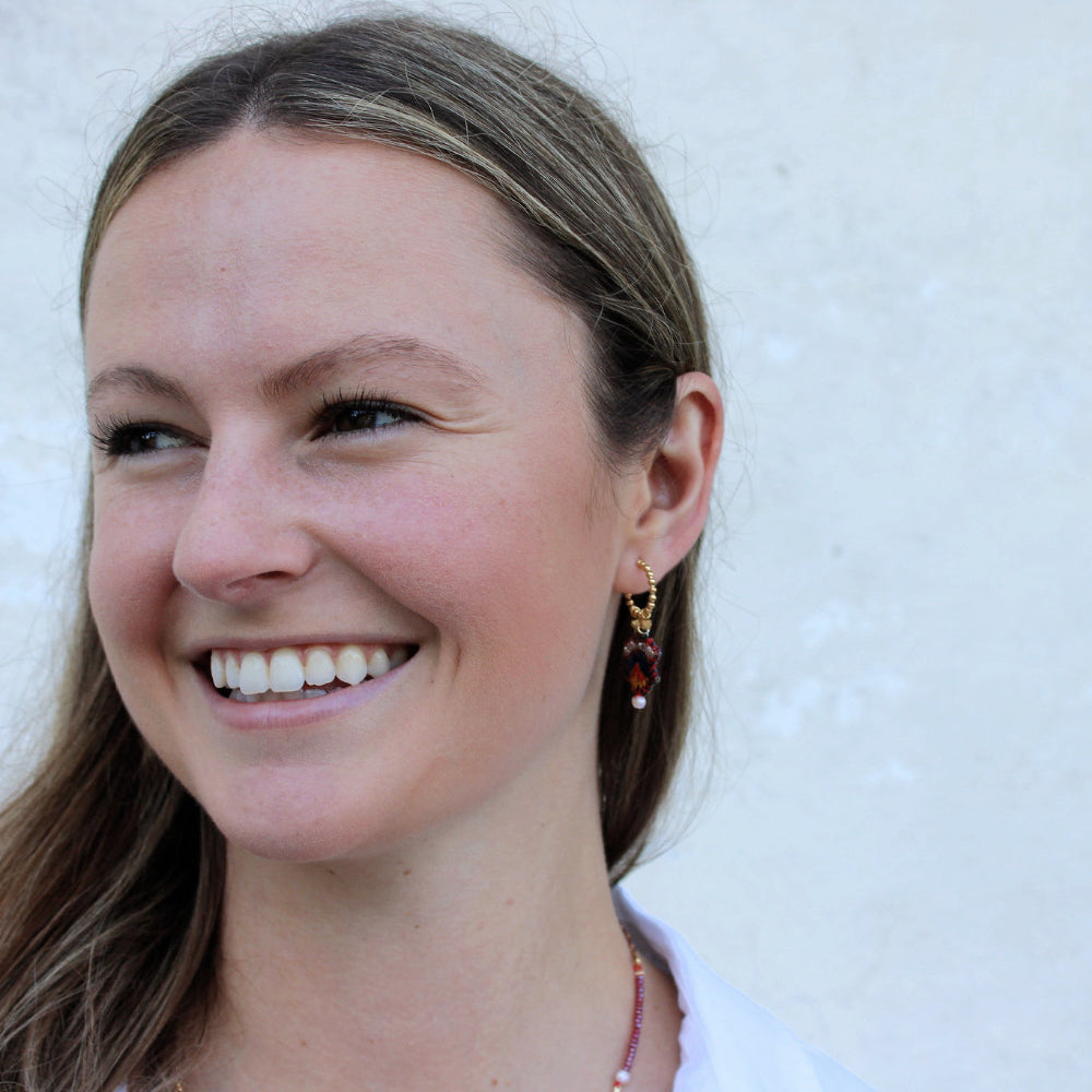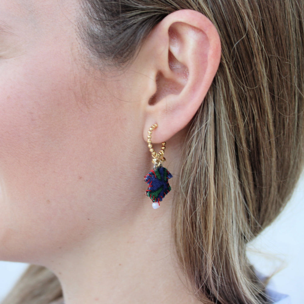 These Embroidered Garden Elena Bloom Earrings are Springtime personified. Featuring materials such as fabrics, Czech and Japanese glass beads, ceramic stones, and European crystal rhinestones, these adorable earrings are sure to become a fast favorite. They are a great way to make a statement and infuse personality into a look. The design features a golden hoop a that connects to an upside down flower with leaves attached in shades of pink, green and champagne. The embroidered texture and beaded accent elements all make for a fresh, floral treat that is sure to be a delight to style. Whether you are a denim darling or a fashionista, these earrings are a must in our book.