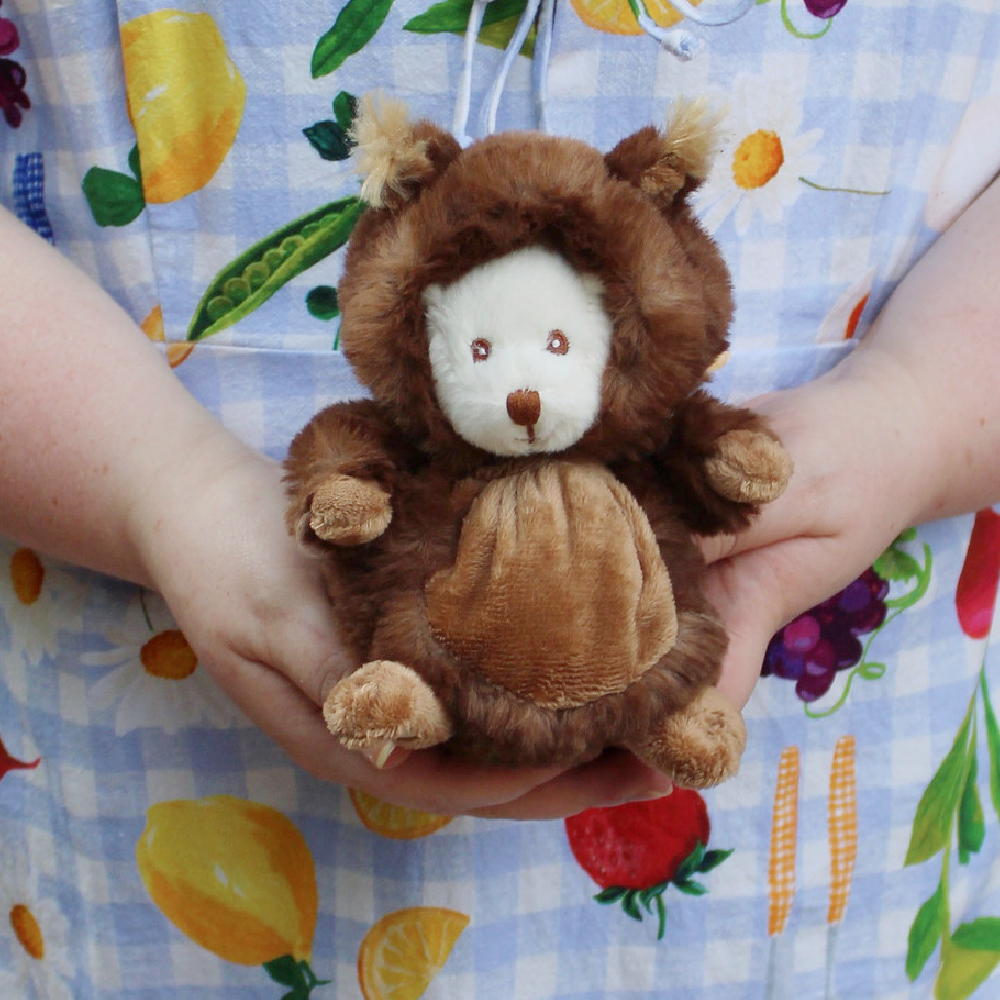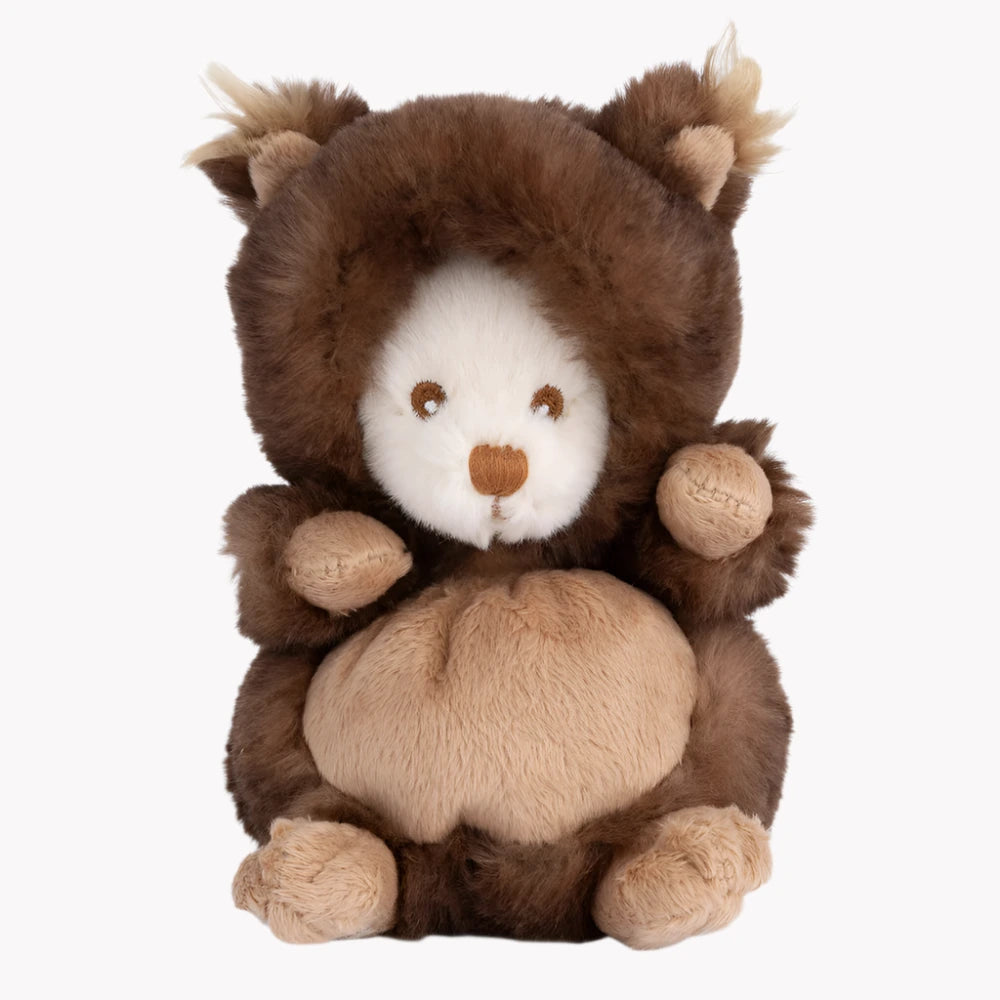 Ziggy, this little white bear, is planning something epic, especially when Ziggy is wearing a squirrel suit! Squirrels are planners. They are always thinking about the future as they store their nuts for the winter…or a snack for later. We’ve been there, but we digress! This cutie is wearing a furry, brown squirrel suit that is fitted with a fluffy tail, ears and all! The eyes, nose and mouth are a light brown embroidered detail that totally adds to the cuteness. This little companion is sure to be the perfect pal for those busy days as squirrels are always running around these parts.