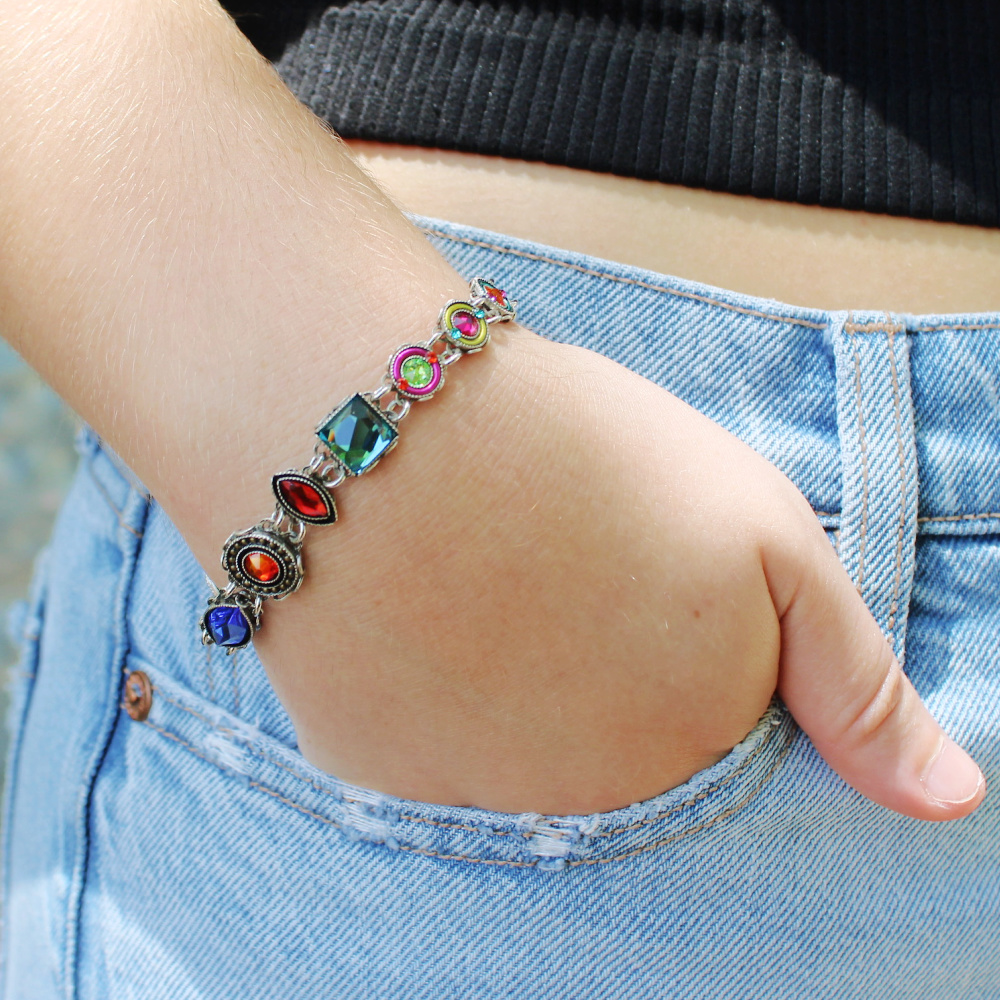 This Architectural Emily Bracelet is a brilliant combination of color and shine. Featuring multicolor European crystals, Japanese and Czech glass beads, this darling bracelet is packed full of colorful crystals that are so to help you let in the lovely. The beautiful crystals are a mix-match of size, shape in color, but the whole design is a stunning creation that is sure to be a treat to wear. What a darling!