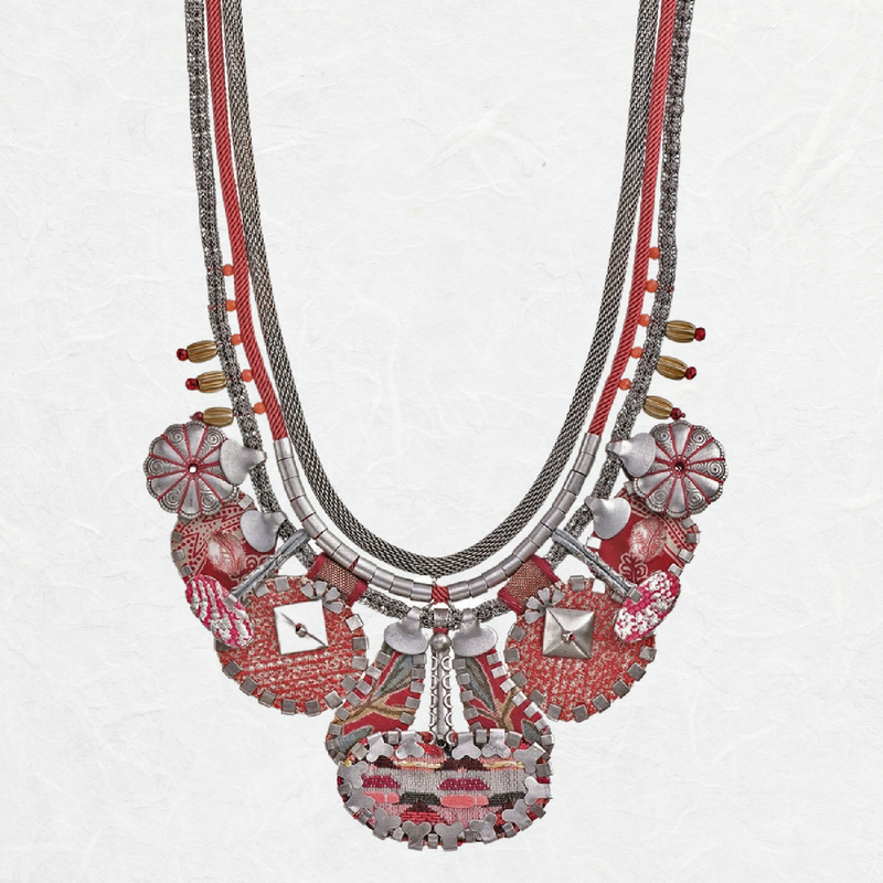 This necklace is red-hot! If you're looking for a necklace that makes a statement that radiates style like no other, look no further than this charismatic creation. This necklace is red-hot!   The Ayala Bar Estella Cigar Necklace utilizes multiple materials which allows for the creation of unique textures and intricate designs. You will make a statement with your next outfit when you add this pop of color to your ensemble. You are sure to catch the eye of everyone around. The warm tones and fiery hues definitely have us looking for our water bottles!