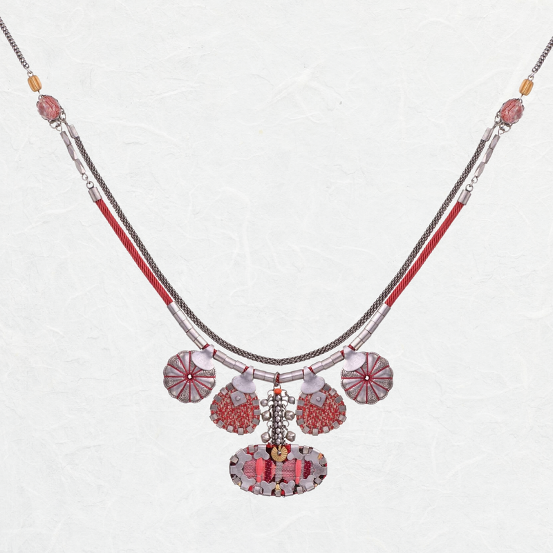 This necklace is red-hot! Looking for a necklace that radiates style like no other, look no further than this charismatic creation. The Ayala Bar Najima Cigar Necklace utilizes multiple materials which allows for the creation of unique textures and intricate designs. Make a statement with your next outfit and add this pop of color to your ensemble. You are sure to catch the eye of everyone around. The warm tones and fiery hues definitely have us looking for our water bottles! You could pair this necklace with a variety of outfits, but blues and neutrals are sure to compliment the richness of color in the best way!