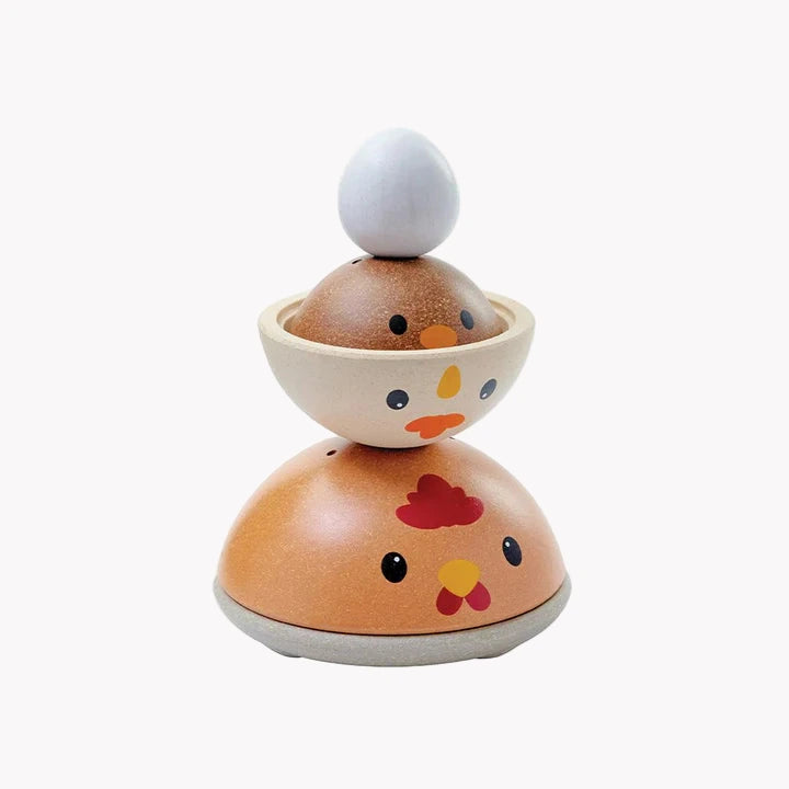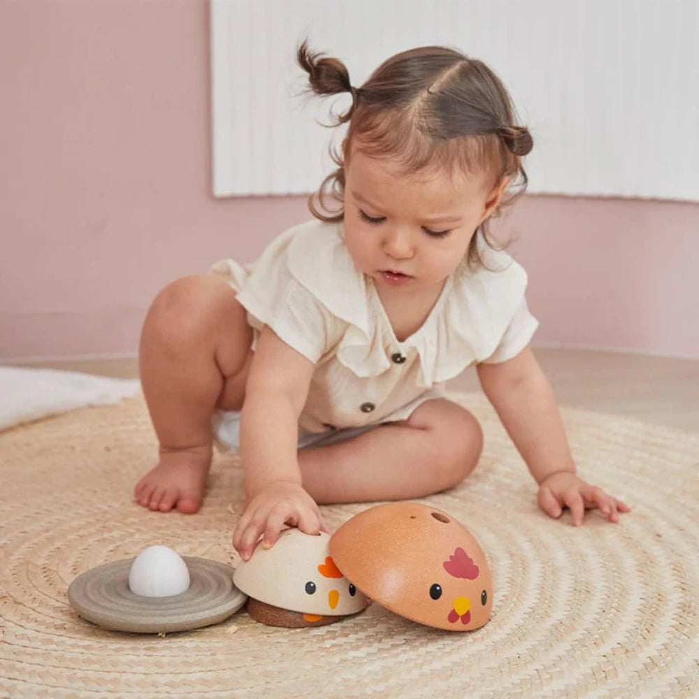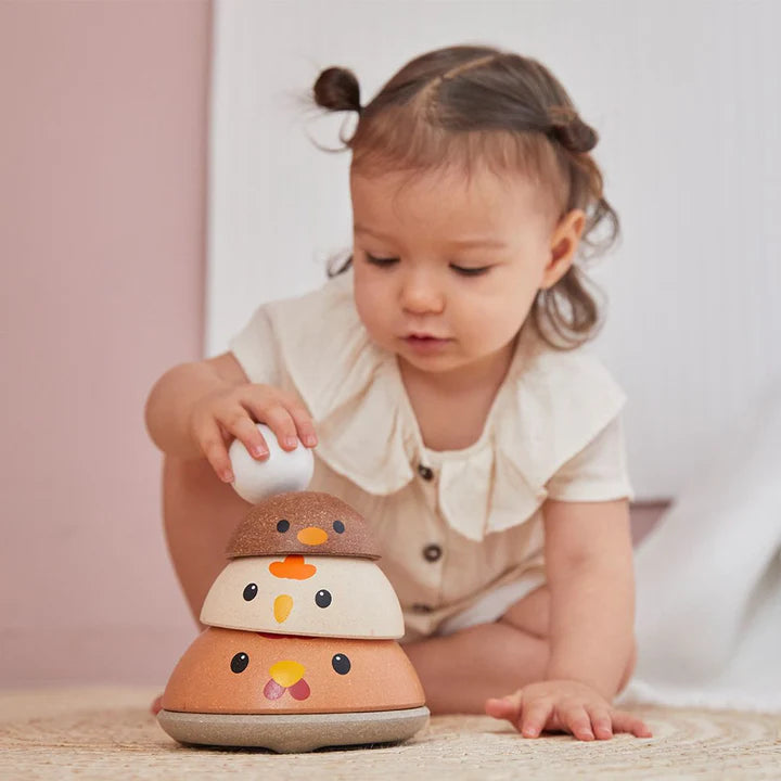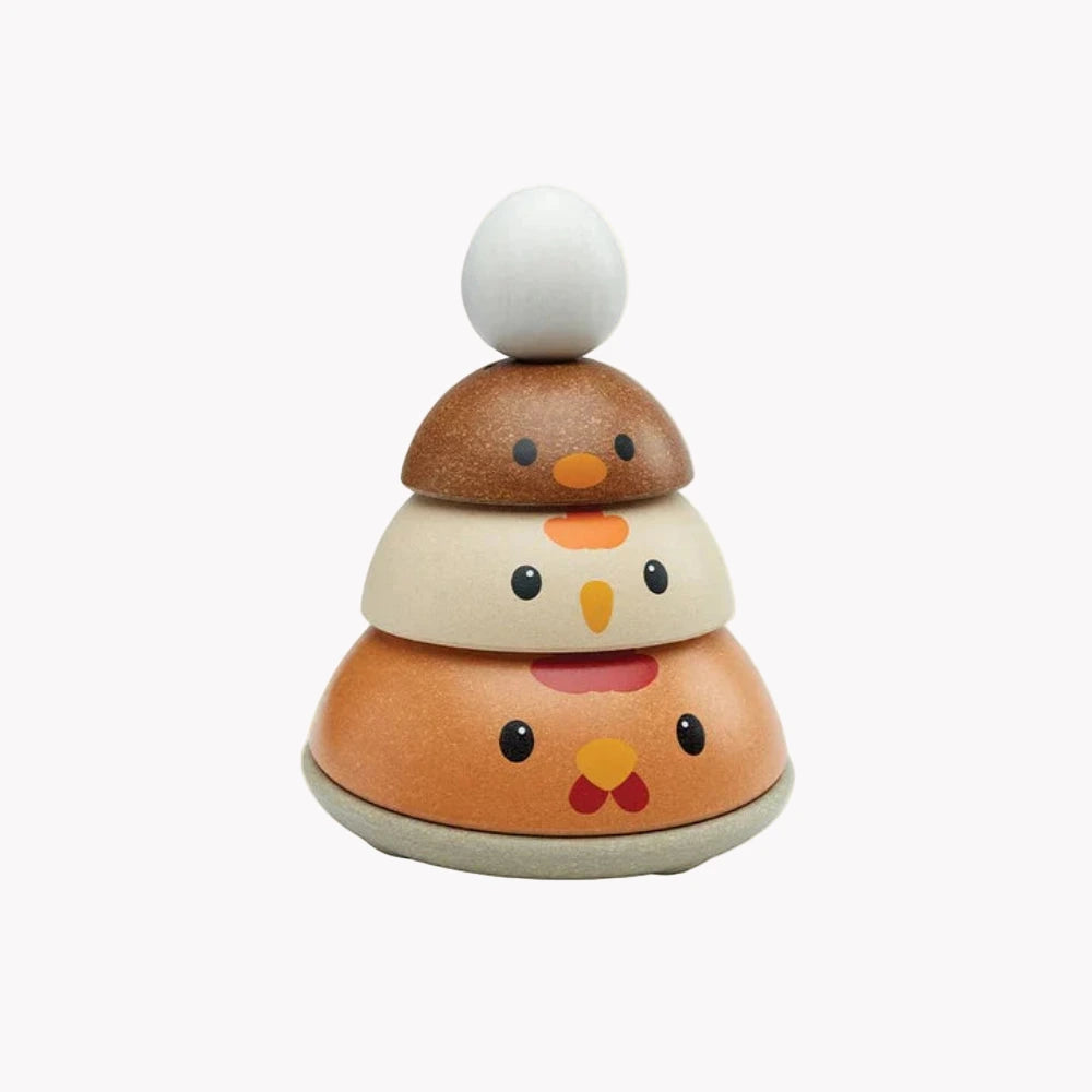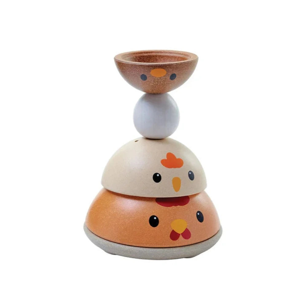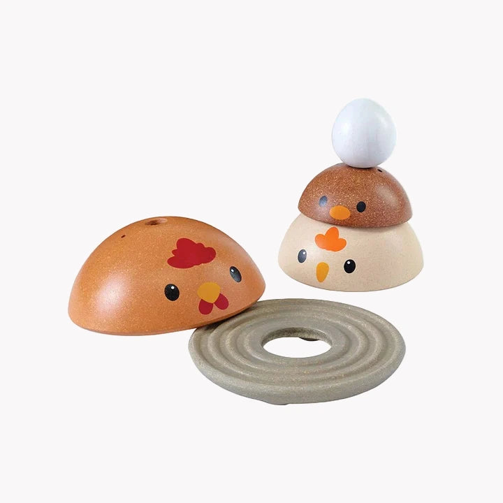 How quickly can you stack this PlanToys Chicken Nesting Set? In the modern rustic colorway, children strengthen fine motor skills, develop logical thinking and problem solving, and explore size/shape recognition through play. Set comes complete with a base for stacking onto and 4 colorful pieces for play. So cute and so fun!