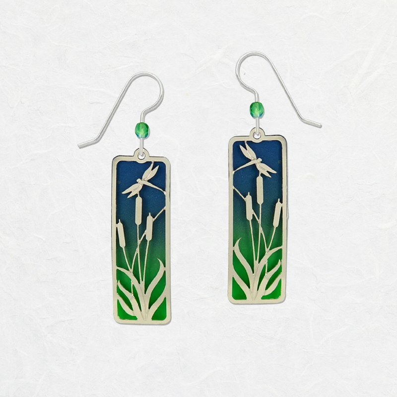 How gorgeous are the Dragonflies at Dusk Earrings? We cannot stop looking at these eye-catching beauties! A silver rectangular frame encompasses a sunrise scene. With cool hues of blues and greens, the silver work continues to form a dragonfly on each earring that seems to be fluttering above the reeds. These statement earrings are certain to become a favorite and the talk amongst your friends. You could style these with a more subdued look and let them do the talking or you could go all in. With a color scheme so stunning, who wouldn’t want to be loud about it?