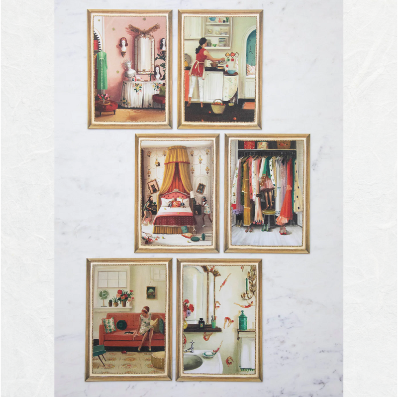 A luxurious flat note set for all of your everyday correspondence! This set of 6 flat notes contains an assortment of our favorite Janet Hill home and interior-inspired artwork printed on luxe heavyweight paper. The set includes coordinating gold stripe lined envelopes for an even more elevated experience.