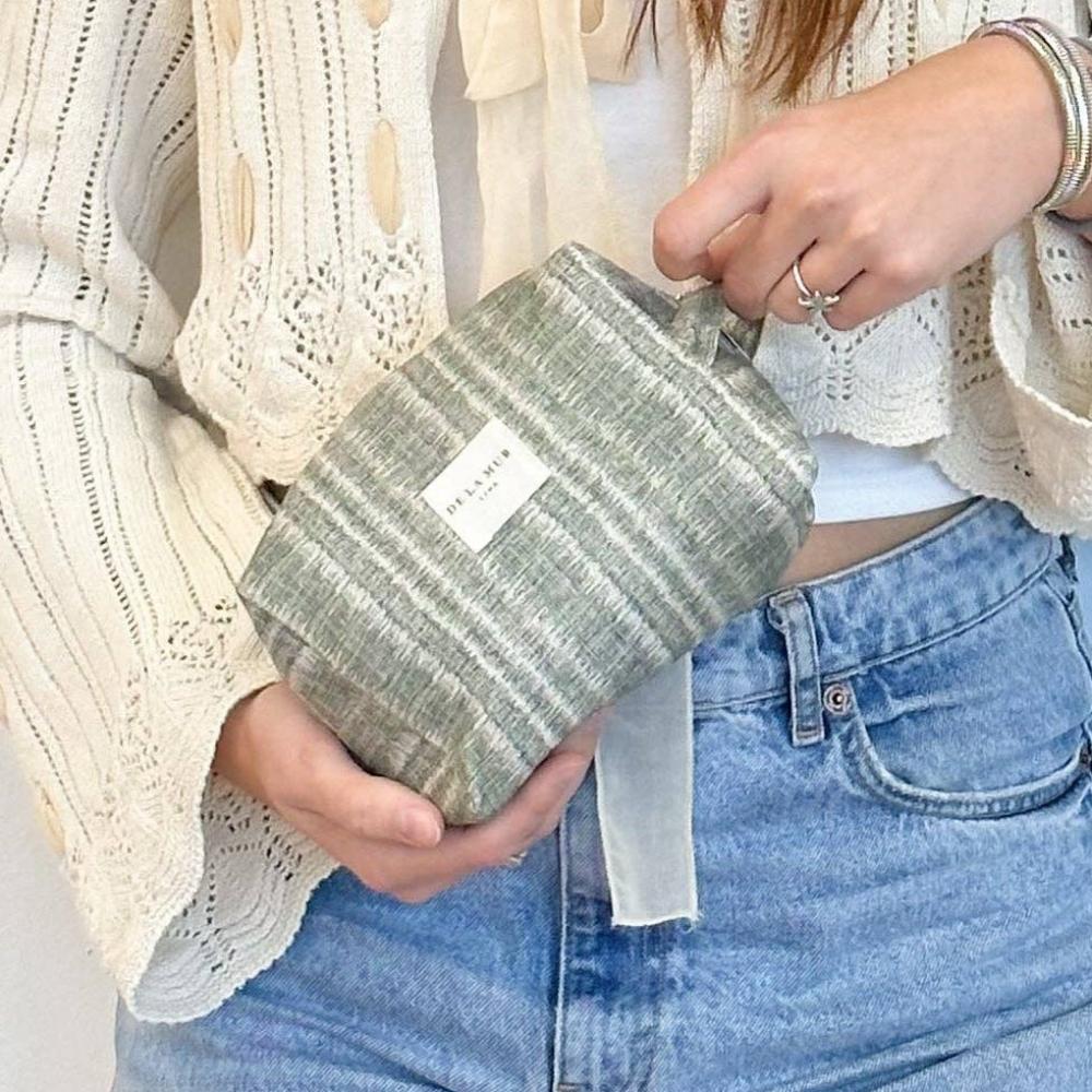 This Ipes Medium Toiletry Bag is sure to make a great addition to your travels or daily on-goings. Featuring neutral shades of greens and grays accented by a beige brand label on the side, this bag is certain to become a fast favorite. The tie dye fabric is produced in Spain, and is sure to catch the eye of those around you. Be prepared for compliments! The natural feel of the bag also has a level of sophistication that is sure to make it a lovely addition. This bag also features a zipper closure on top, so you can be sure your belongings are secure wherever the day takes you.