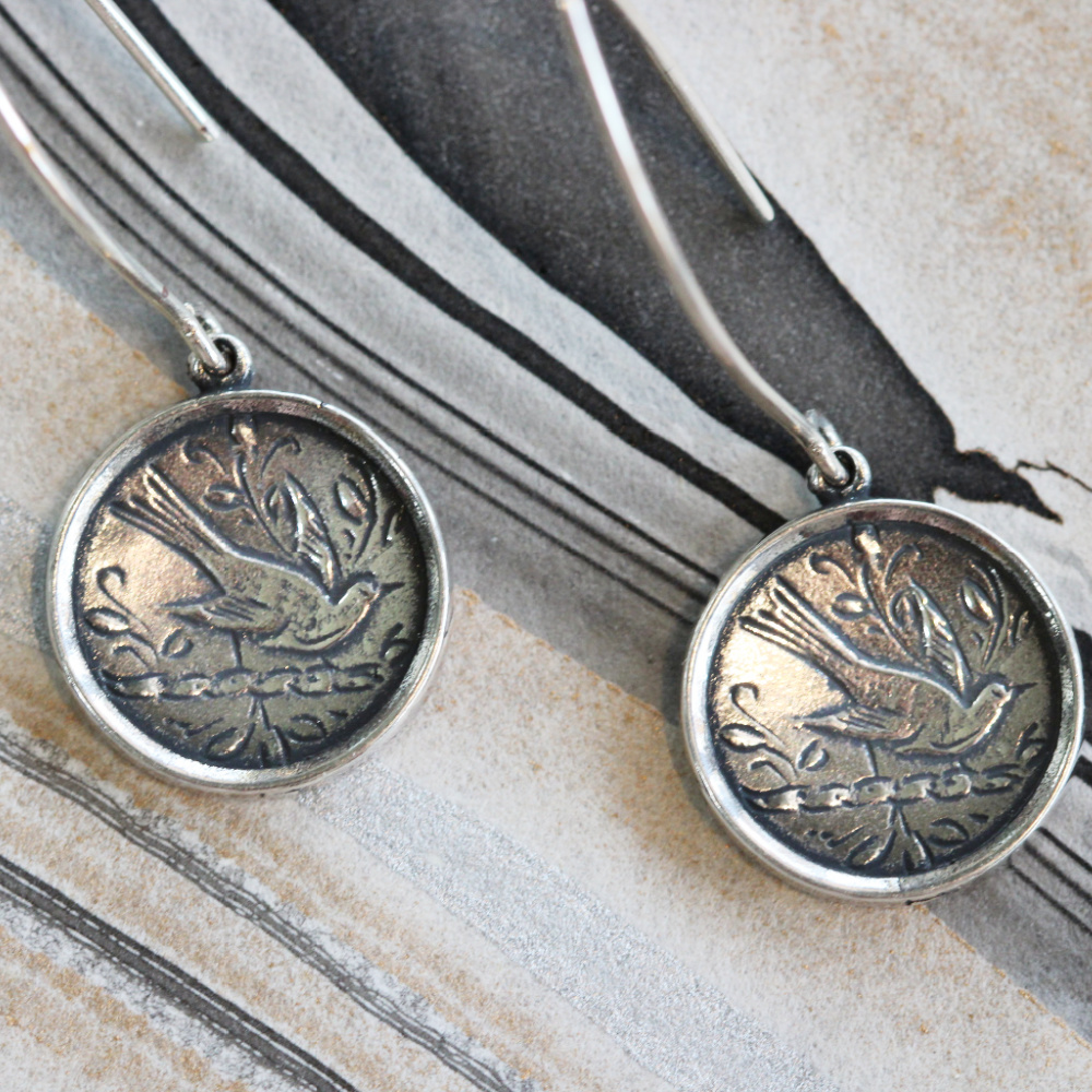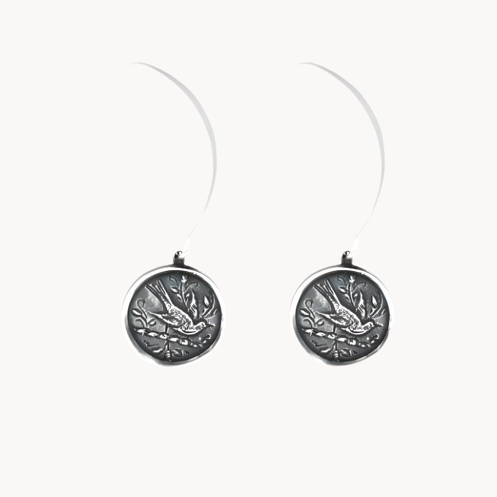 This oiseau or 'little bird' design is certain to be your cutest companions. Suspended from an ear wire, the pendant features a bird mid flight with delicate foliage in the background. Sure to be a staple in your collection, these earrings can be worn solo but would pair lovely with other earrings if you have multiple piercings. These earrings are totally styleable!