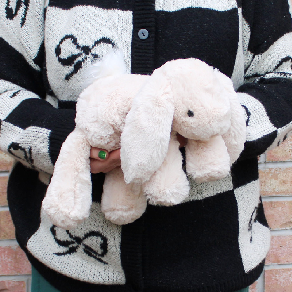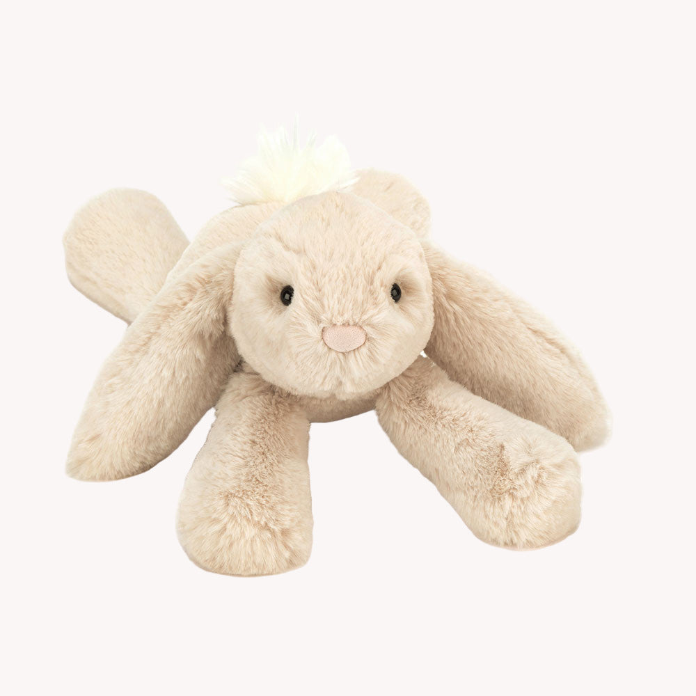 The Jellycat Smudge Rabbit has discovered his true calling: watching sleeping dogs lie. It's a niche (and very relaxing) hobby, but someone's got to appreciate the art form. He’s become a master at spotting the perfect dozy pose. When not quietly applauding a golden retriever’s afternoon nap, Smudge loves catching up with his cousin, Smudge Apricot Rabbit, a budding nap consultant with top marks in coZy corners and gentle snoring. Together, they’re working out the best way to catch 40 winks – are you ready to help?