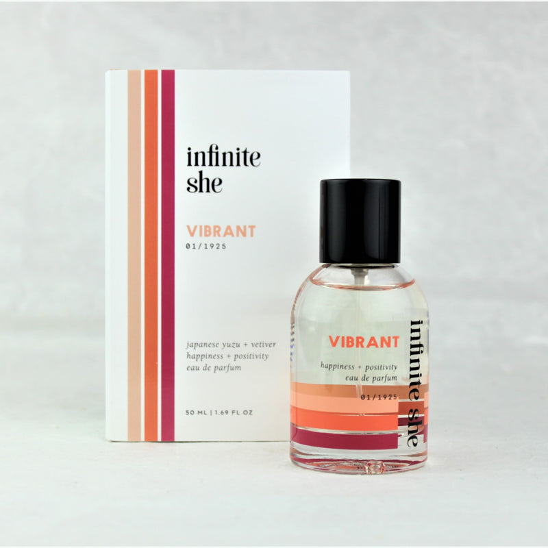 You will shine on with the Infinite She Vibrant Eau de Parfum that is full of positivity and happiness! You'll enjoy fresh, crisp Vetiver that shimmers with citrusy traces of Japanese Yuzu for an irresistibly sparkling aura. The combination of these divinely modern botanicals plays up your unique essence, leaving an inspiring radiance full of good vibes and much more than fragrance in your wake. Did we mention that this fragrance is also available in a travel-size rollerball?