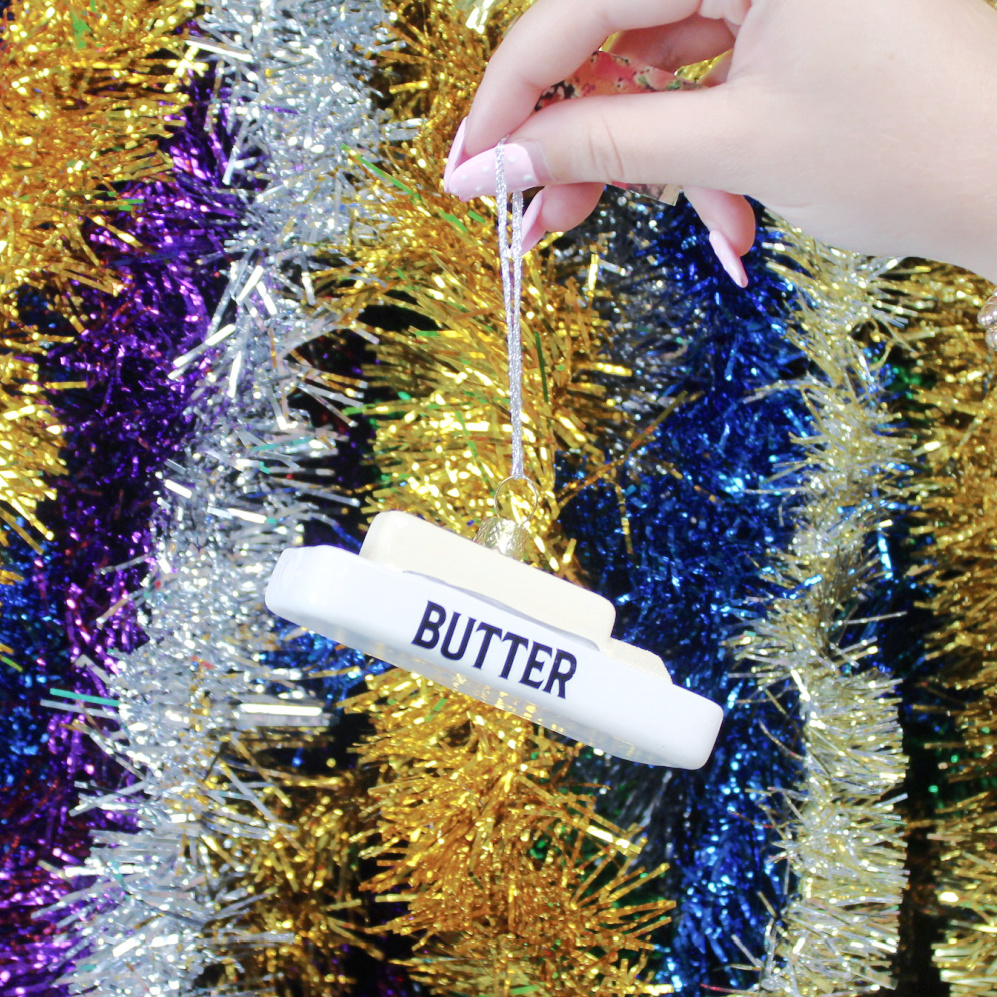 This vintage-inspired Vintage Butter Dish Ornament would make a sweet gift for someone special in your life. This vintage butter dish ornament features white and soft yellow colors with black lettering for BUTTER. How adorable is that?! This mini modern memento is sure to be a nostalgic addition to your tree this holiday. From the details to the decor of times gone by this vintage butter dish ornament is sure to add character to a space.