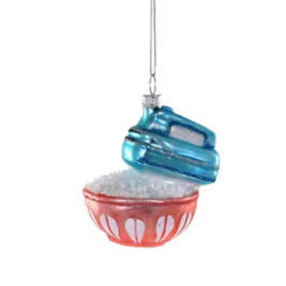 This vintage-inspired Vintage Hand Mixer Ornament would make a sweet gift for someone special in your life. This ornament features blue and rosy accents. There are intricate details in this piece. The longer you look, the more is revealed. How adorable is that?! This mini modern memento is sure to be a nostalgic addition to your tree this holiday. From the details to the decor of times gone by this vintage hand mixer ornament is sure to add character to a space.