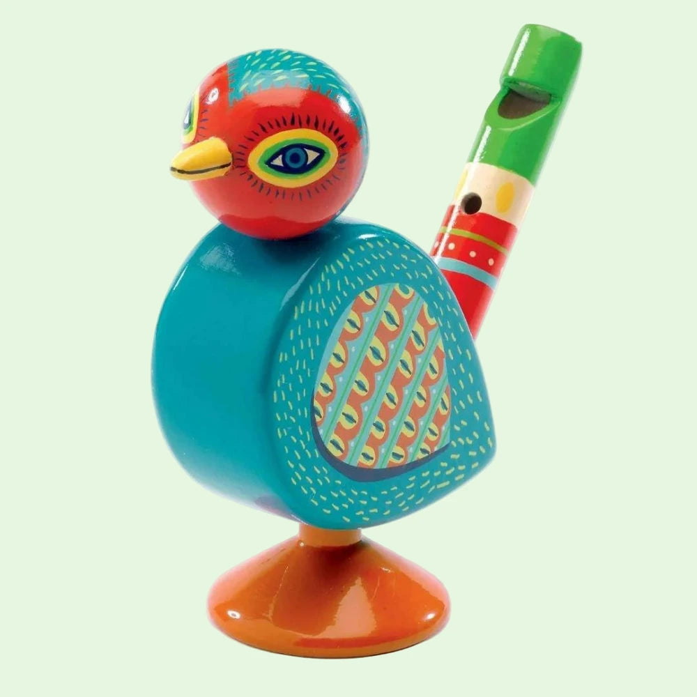 This Wooden Bird Whistle Musical Instrument is sure to catch the attention of those around, not only by the sound, but the beautiful design! Designed by French illustrator Magali Attiogbé, this wooden bird whistle has a look that is totally stunning. Resembling some traditional folk art, this design heavily features beautiful hues of blue with accents of red and green to name a few. The bird itself is compact and ideal for a kiddo’s grip, the whistle is shaped like a bird that is standing with a flared base and the mouthpiece is at the back and sticking up like tail feathers. Cute!